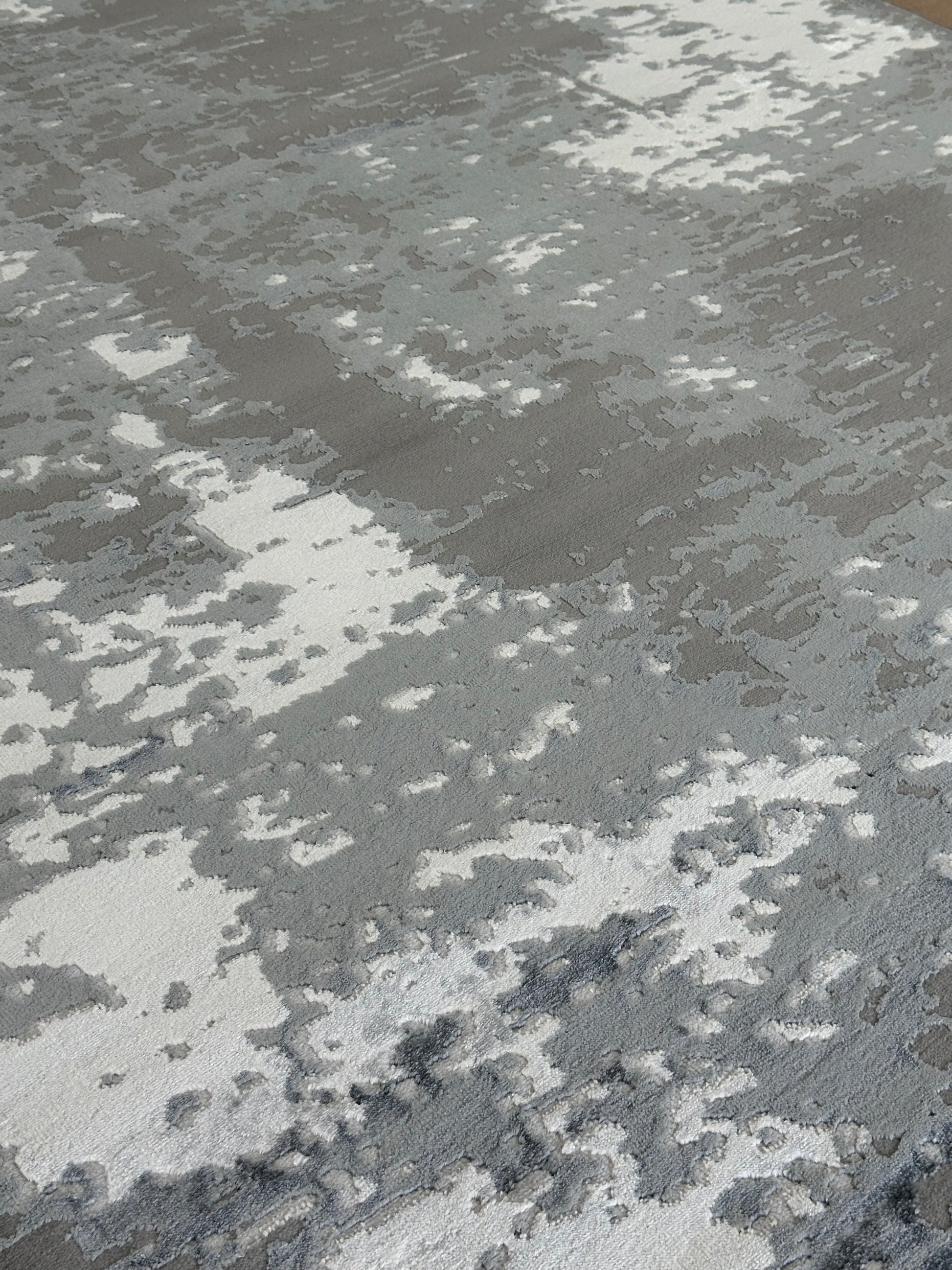 Bring modern sophistication into your home with this Abstract Area Rug, designed to make a subtle yet impactful statement. Featuring a contemporary distressed pattern in shades of grey, white, and silver, this rug complements minimalist, industrial, or urban interiors effortlessly.